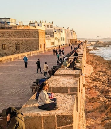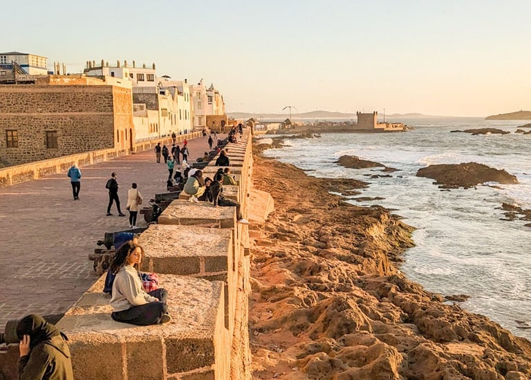 En arrivant à Essaouira, anciennement connue sous le nom de Mogador, vous aurez l’opportunité d’explorer son charmant port de pêche, sa médina classée au patrimoine de l’UNESCO et ses remparts historiques offrant une vue imprenable sur l’Atlantique.